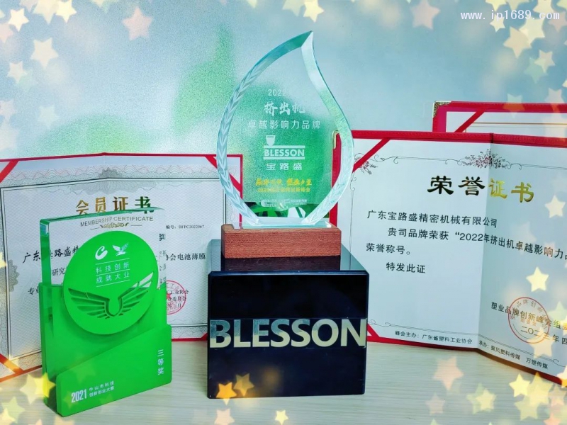 此外,寶路盛還獲評2022年擠出機十大卓越影響力品牌之一,榮獲2021年中山市創新創業大賽三等獎、多層共擠鋰電池隔膜生產線榮獲2023年塑料行業-榮格技術創新獎等。