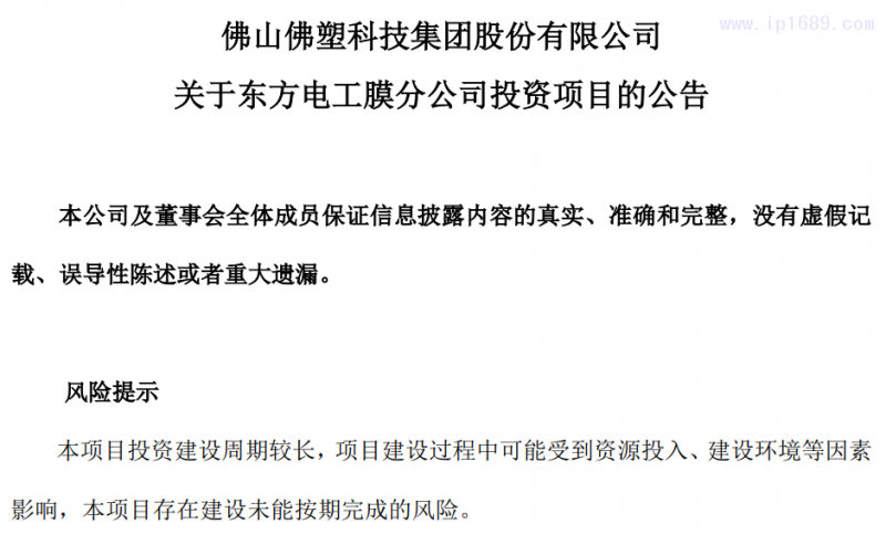 1月11日,佛山佛塑科技集團(tuán)股份有限公司公告稱,公司下屬東方電工膜分公司擬在佛山市三水區(qū)投資19,570.19萬元建設(shè)超薄電容膜生產(chǎn)線及相關(guān)配套設(shè)施項(xiàng)目,進(jìn)一步擴(kuò)大電容膜產(chǎn)能,提升市場(chǎng)競(jìng)爭(zhēng)力,鞏固和強(qiáng)化公司在電容膜的市場(chǎng)地位。