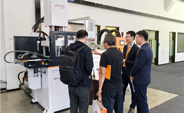 4月15日,2025震雄開放周活動盛大啟幕!活動首日眾多來自汽車、電子、醫療等領域的企業代表齊聚震雄,共同見證了--真實工廠環境下的智能注塑技術革命。