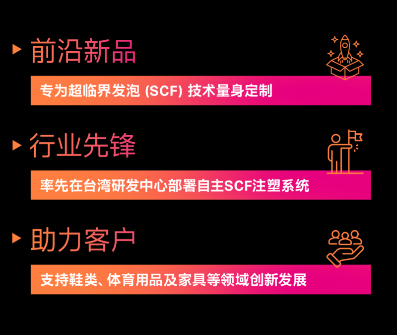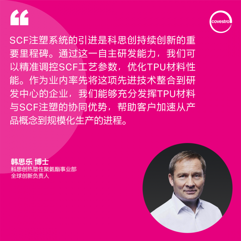 作為行業先鋒,科思創率先在其位于中國臺灣的TPU亞太研發中心配置了先進的SCF注塑系統。這一尖端設施使科思創能夠為客戶提供全方位的研發支持和快速應用服務,充分體現了公司在推動鞋材解決方案創新和行業發展方面的堅定承諾。