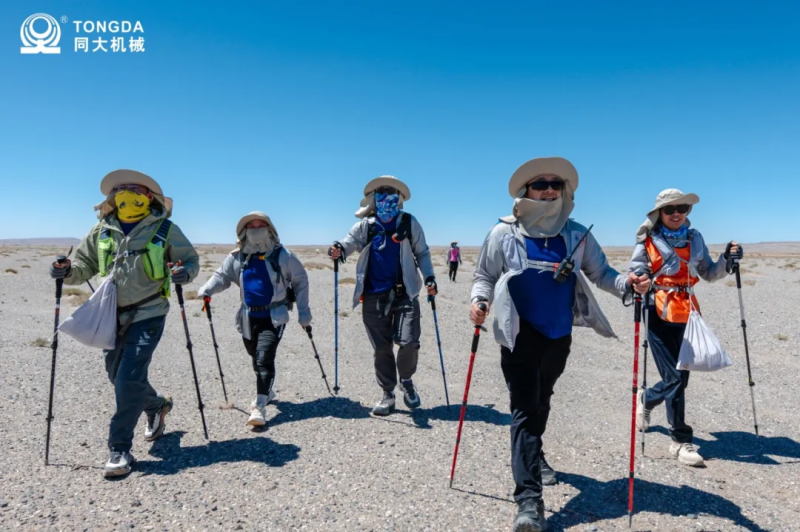 戈壁灘上的風(fēng)沙似歷史的訴說,輕撫過每一寸土地,也見證著工業(yè)制造人將產(chǎn)線上的默契移植戈壁——有人主動(dòng)退居隊(duì)尾守護(hù)落后者,有人用手杖做牽引為隊(duì)友支撐體力,有人分享的榨菜干糧,無一不是在碧藍(lán)的天空下交換的人生故事。當(dāng)對(duì)講機(jī)傳來"全員間距不超過100米"的指令,這支曾由獨(dú)立個(gè)體組成的隊(duì)伍,已然蛻變?yōu)榫芤Ш系凝X輪組。玄奘孤身求法的傳說仍在耳畔,而同大機(jī)械的團(tuán)隊(duì)用現(xiàn)代工業(yè)制造人的方式,在相互支撐中完成了對(duì)千年戈壁精神的傳承。