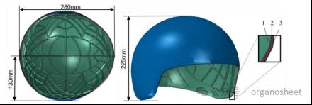 這項研究采用了模壓+注塑一體化成形技術(shù),通過模壓成型確保纖維方向分布,提高力學(xué)性能,再結(jié)合注塑成型對頭盔表面進行包膠處理,提升外觀質(zhì)量和舒適度。這種方法不僅兼顧了兩種工藝的優(yōu)勢,還使得生產(chǎn)流程更高效。