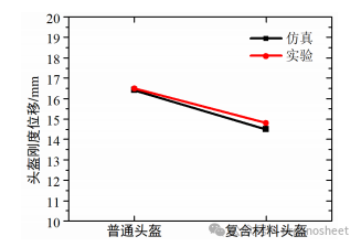 剛度測試:相比傳統(tǒng)ABS頭盔,復(fù)合材料頭盔在相同重量下剛度更高,減少變形,提高抗沖擊性。