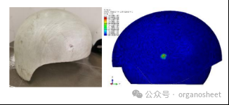 圖1:復(fù)合材料頭盔穿透實驗與仿真結(jié)果對比