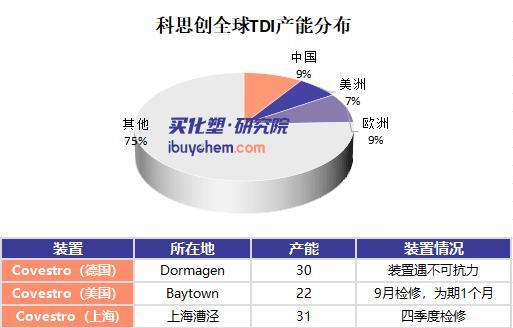 據(jù)了解,科思創(chuàng)目前在全球的三大TDI生產(chǎn)基地中,僅有上海工廠維持正常運轉(zhuǎn)。德國工廠因不可抗力持續(xù)停產(chǎn),復(fù)產(chǎn)時間仍不明朗;美國工廠又將于9月進入為期一個月的計劃檢修期。上海工廠也將在四季度開始超長周期的大修,這意味著科思創(chuàng)的供應(yīng)緊張局面至少會持續(xù)到明年2月份。
