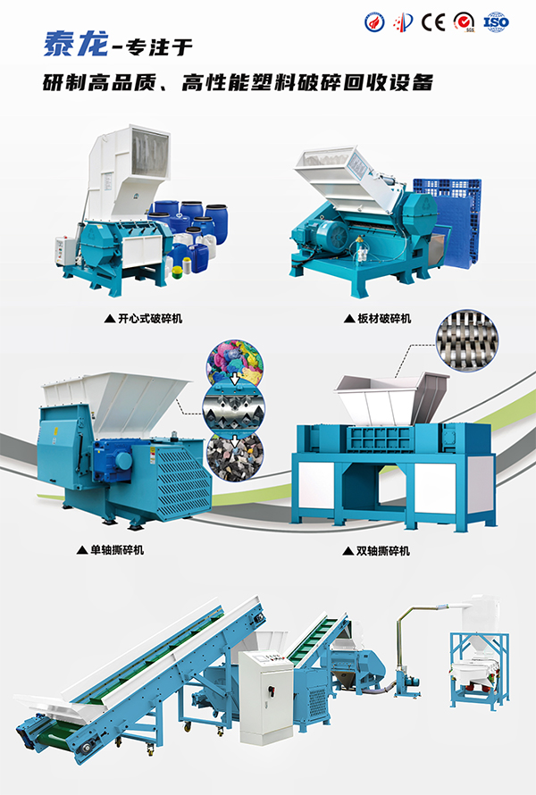 作為華南塑料回收設(shè)備領(lǐng)域的標(biāo)桿企業(yè),泰龍長期深耕PET瓶片、HDPEPP硬塑料、LDPE薄膜等全品類回收設(shè)備研發(fā)。其核心產(chǎn)品——塑料撕碎機(jī)、破碎機(jī)、擠出造粒系統(tǒng)等,均搭載施耐德、西門子等國際一線電氣元件,設(shè)備故障率及能耗都大大降低,廣泛應(yīng)用于汽車、醫(yī)療、包裝等各大行業(yè)。