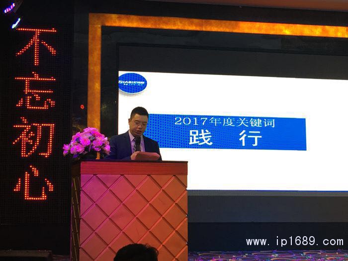 尼嘉斯總經理唐亞青發表激情致辭,他深度概括尼嘉斯2017年使命踐行的成就,先后榮獲了“知識產權管理體系認證證書”、“國家高新技術企業”、“2017年度優質供應商”等榮譽。2017年是所有尼嘉斯人和合作伙伴們相互成就的一年!唐總深深鞠躬,以此表達了對全體尼嘉斯人和合作伙伴由衷的感謝!