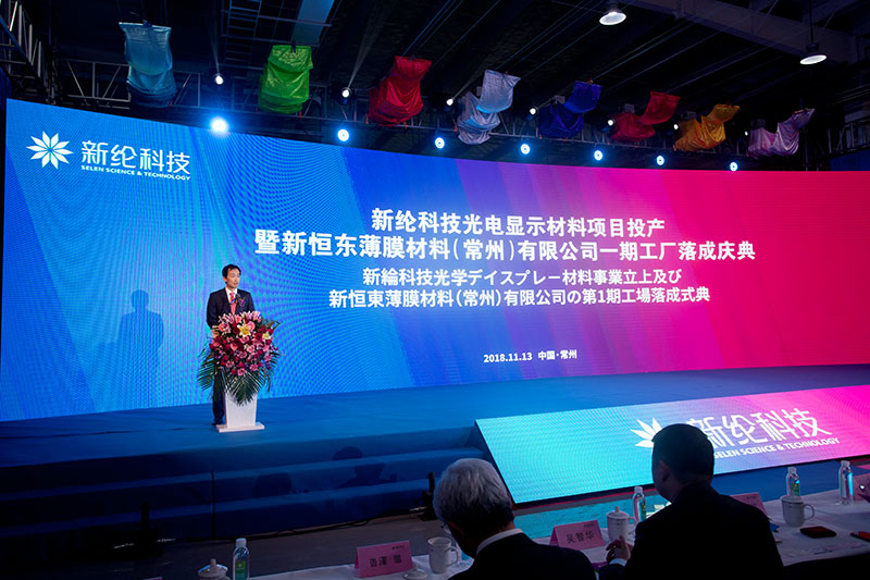 11月13日上午,新綸科技(股票代碼:002341)舉行新綸科技光電顯示材料項目投產暨新恒東薄膜材料(常州)有限公司一期工廠落成慶典。