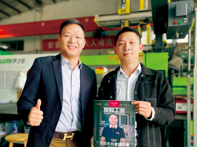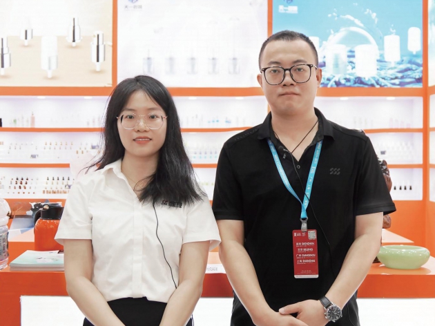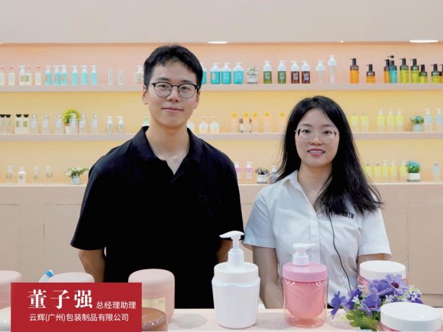 采訪日期:2024年9月11日;采訪公司:云輝(廣州)包裝制品有限公司;使用設備:海天注塑機;采訪對象:總經理助理董子強(左);主要產品:洗護塑料包裝瓶