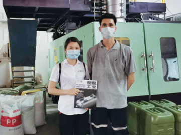 走進東莞長盈塑膠制品有限公司(以下簡稱“長盈”),一排排綠色的塑料化工桶陳列在眼前,旁邊擺設著一臺貝克威爾吹塑機,一臺泰龍破碎機,工人們正在有條不紊地抓緊生產,為出貨做準備。
