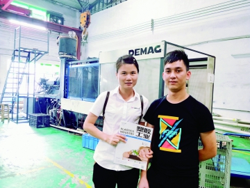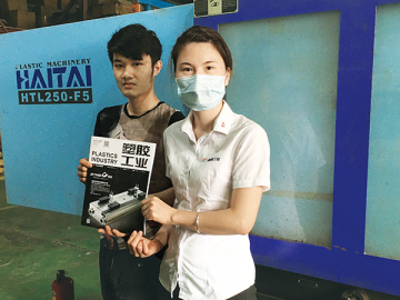 波強塑料制品廠(以下簡稱“波強”)主要生產LED燈飾配件等塑料制品,車間使用震雄,佳明等品牌的注塑機共9臺,另配備了4臺翔偉的機械手,都是今年剛買的新設備。