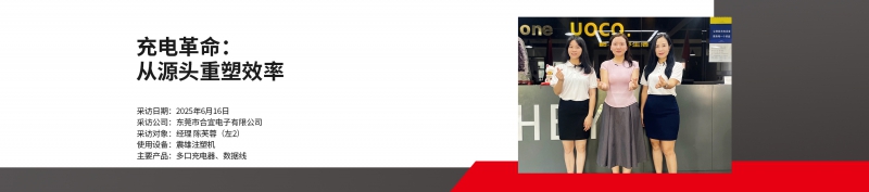 [導讀] 采訪日期:2025年6月16日 采訪公司:東莞市合宜電子有限公司 采訪對象:經理陳芙蓉 使用設備:震雄注塑機 主要產品:多口充電器、數據線